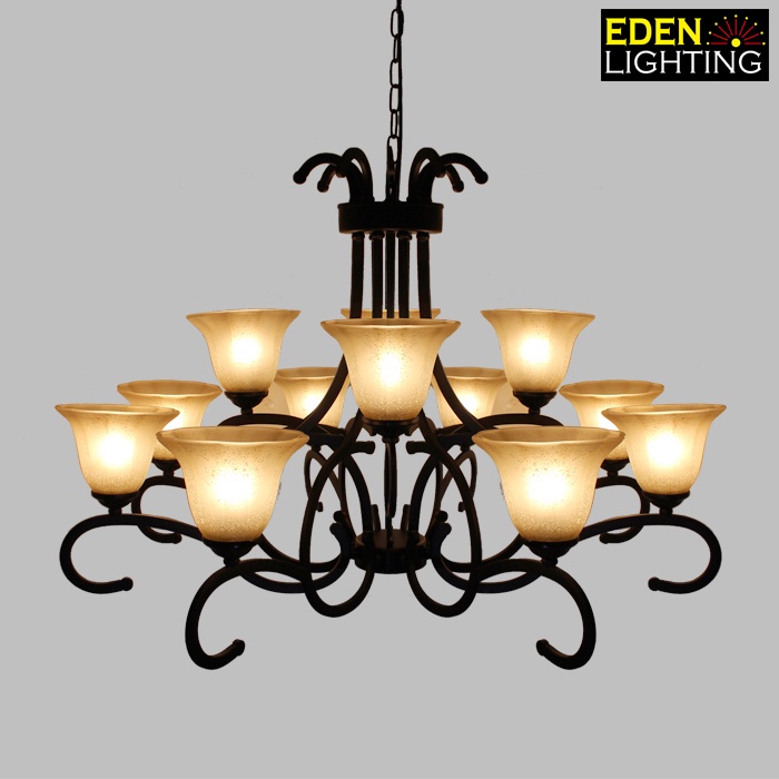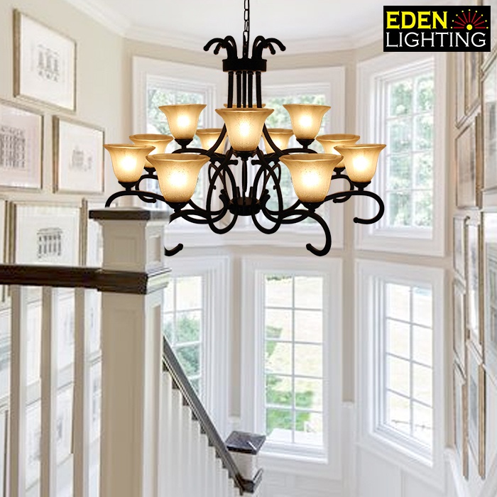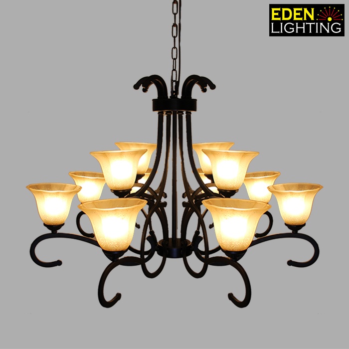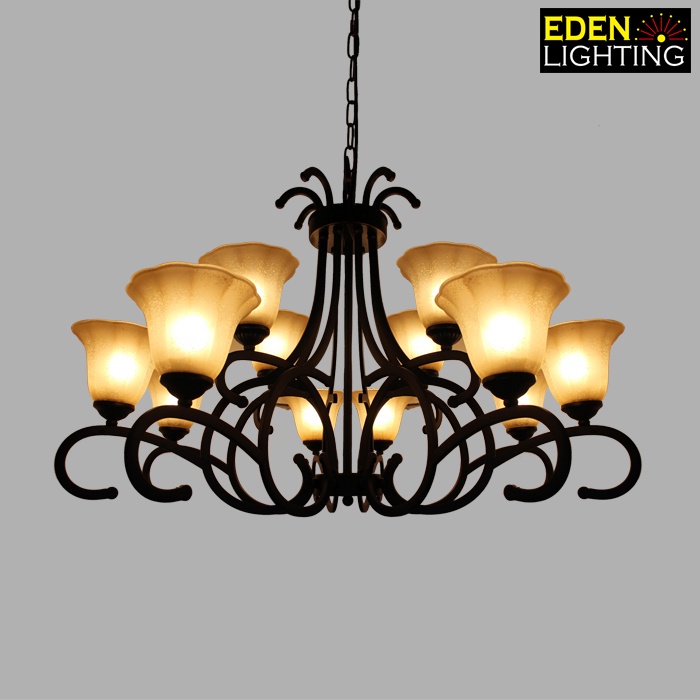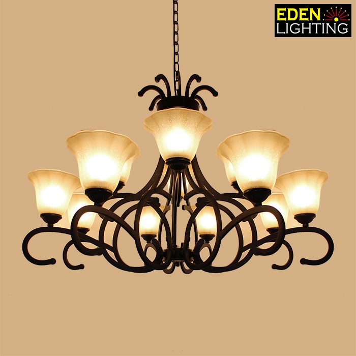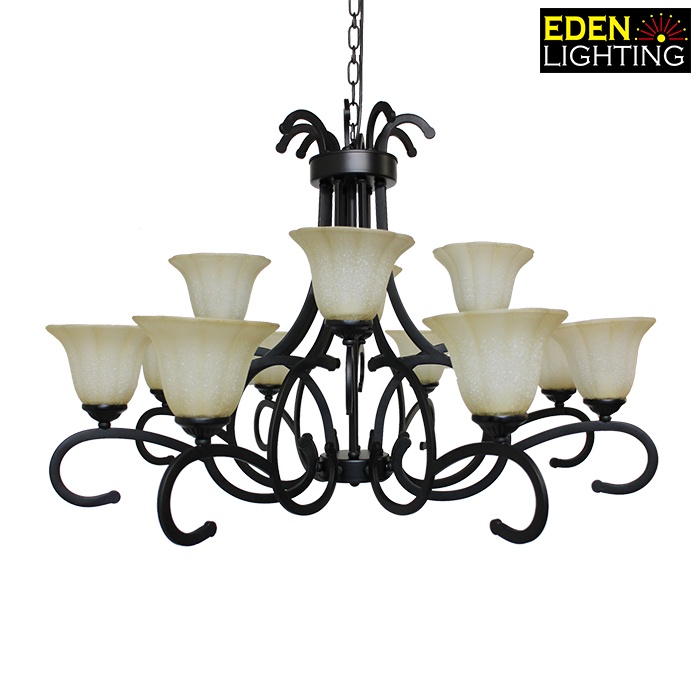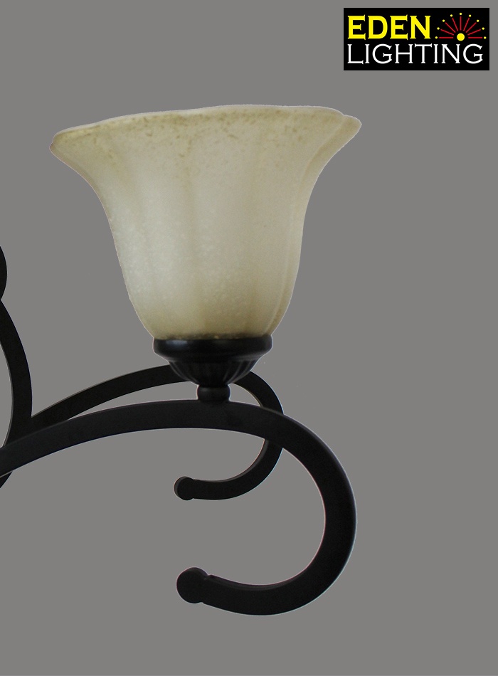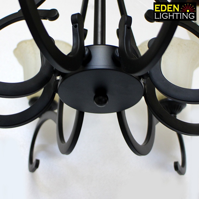 An unique softening effect comes from this black pendant chandelier with its rounded curves and glass shade. Available in two sizes of 8P &12P.