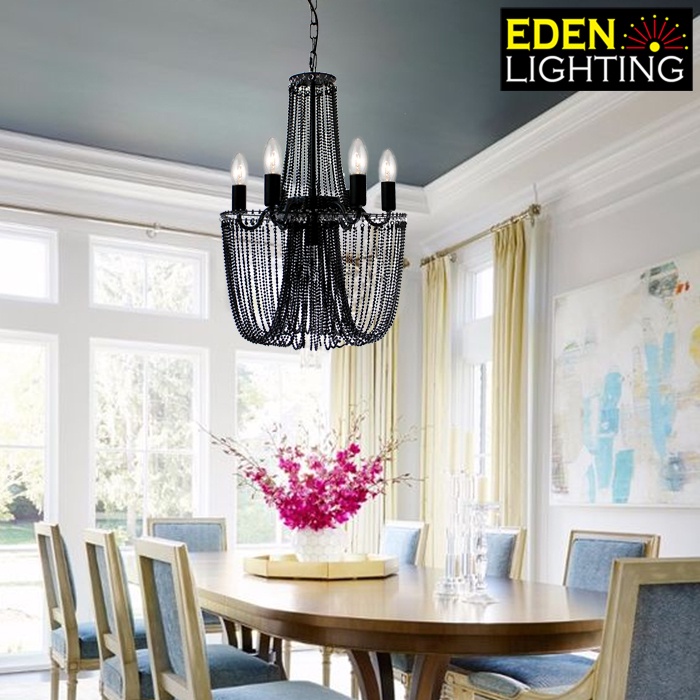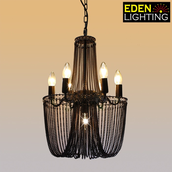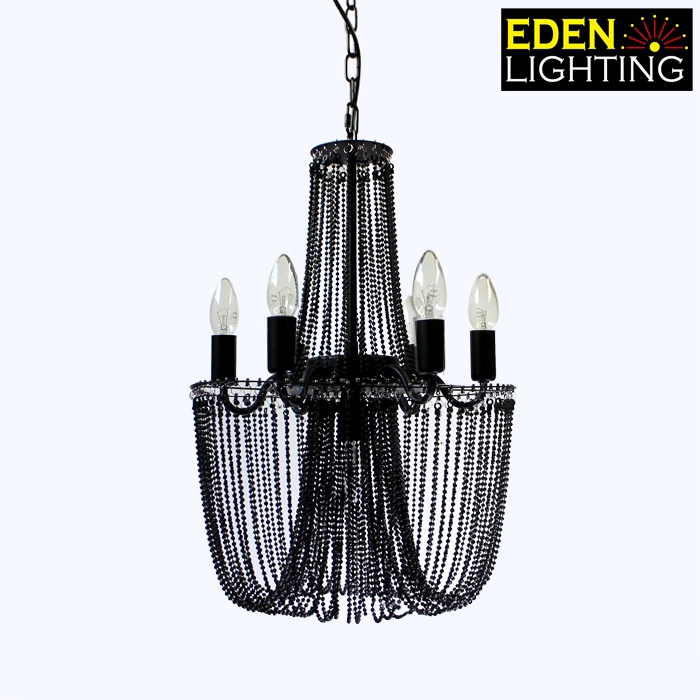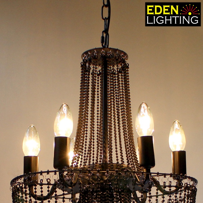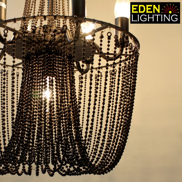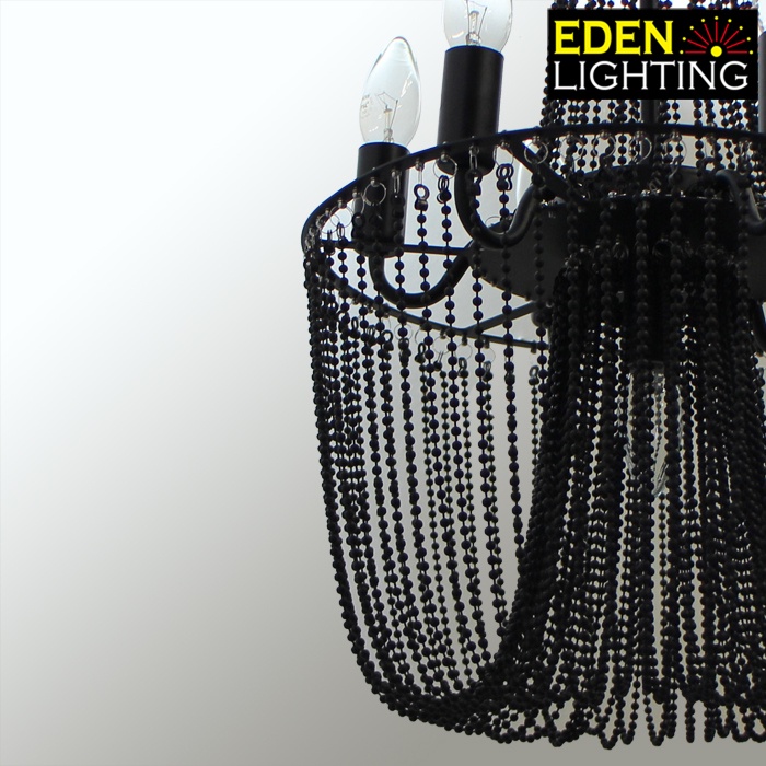 Telyn is a classic European style chandelier features a black finish that highlights its hammered metal surface and hundreds of beads.