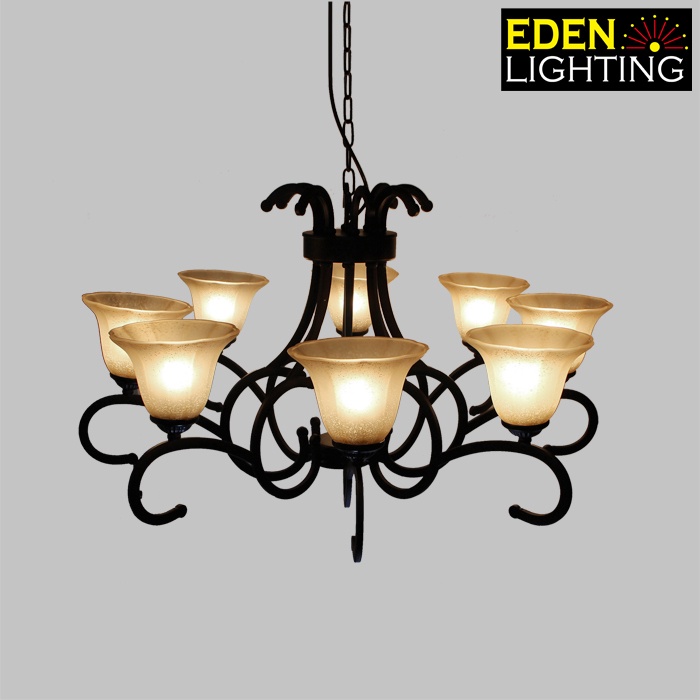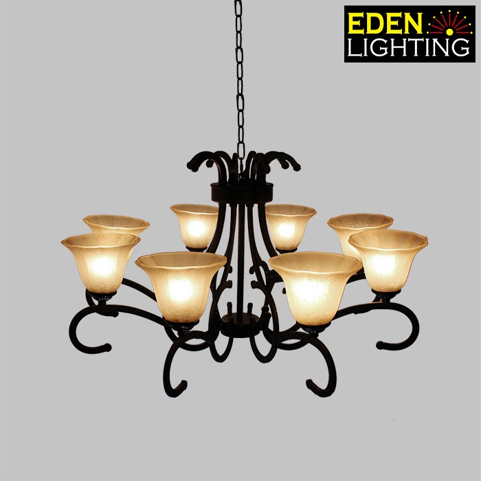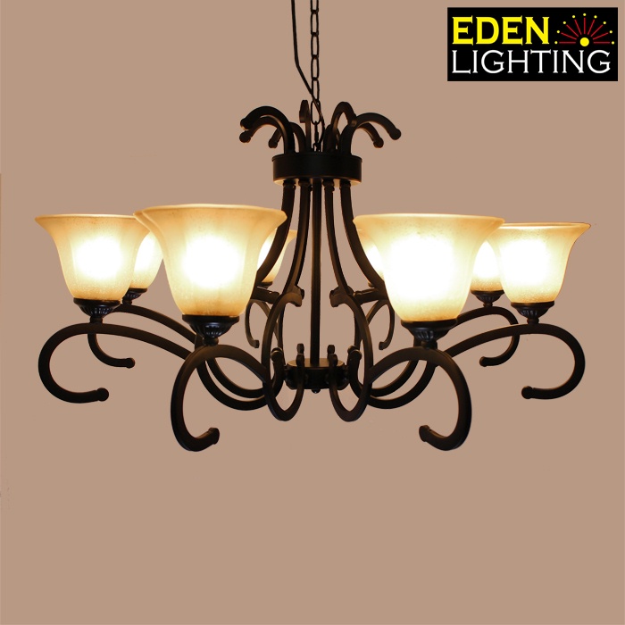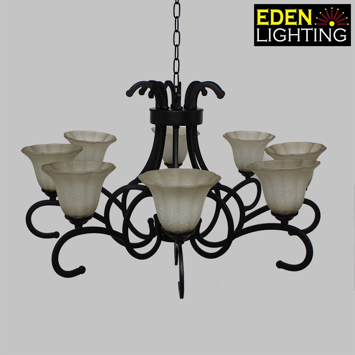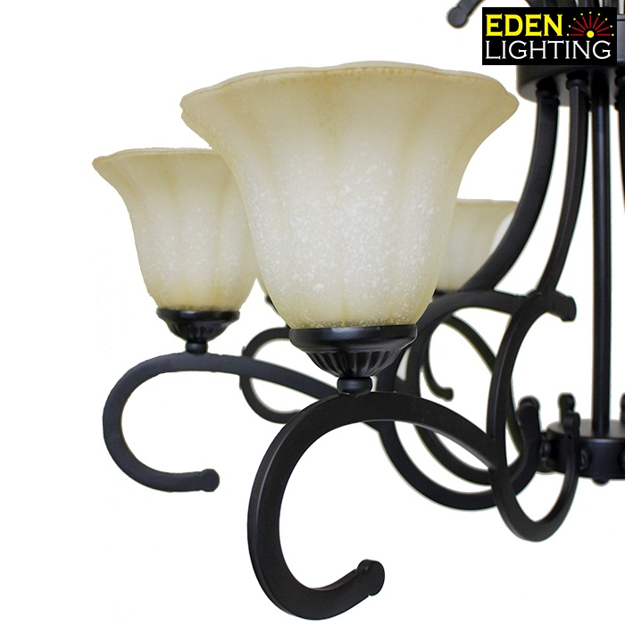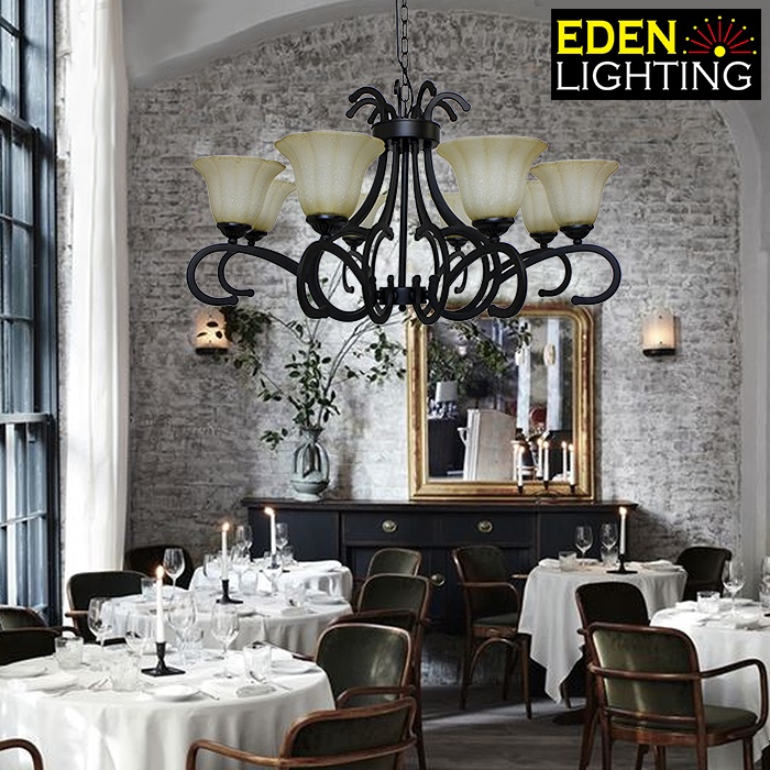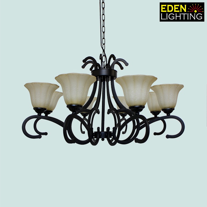 An unique softening effect comes from this black pendant chandelier with its rounded curves and glass shade. Available in two sizes of 8P &12P.