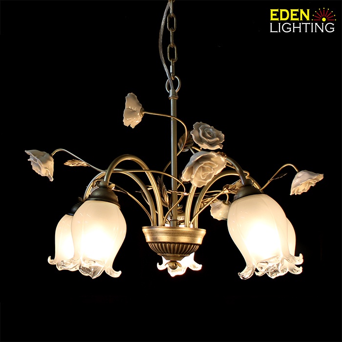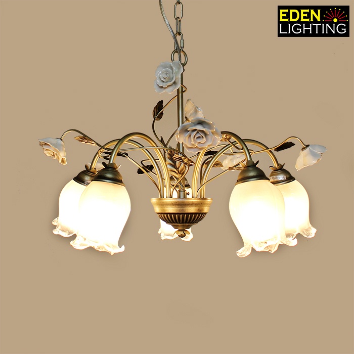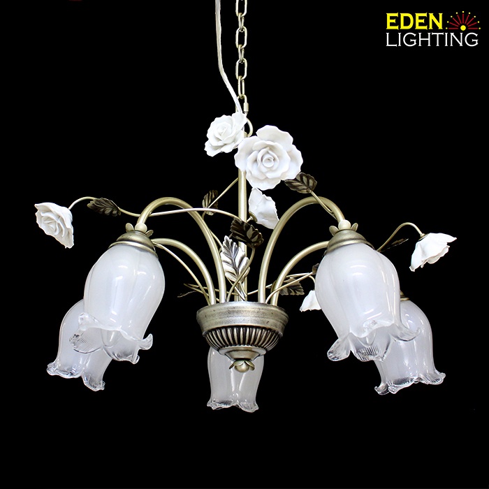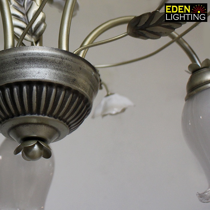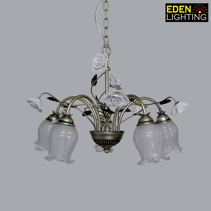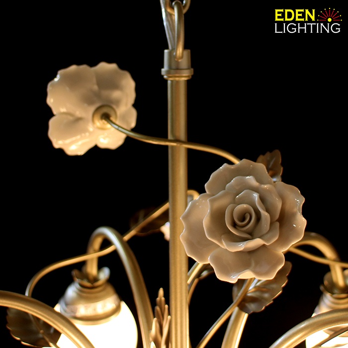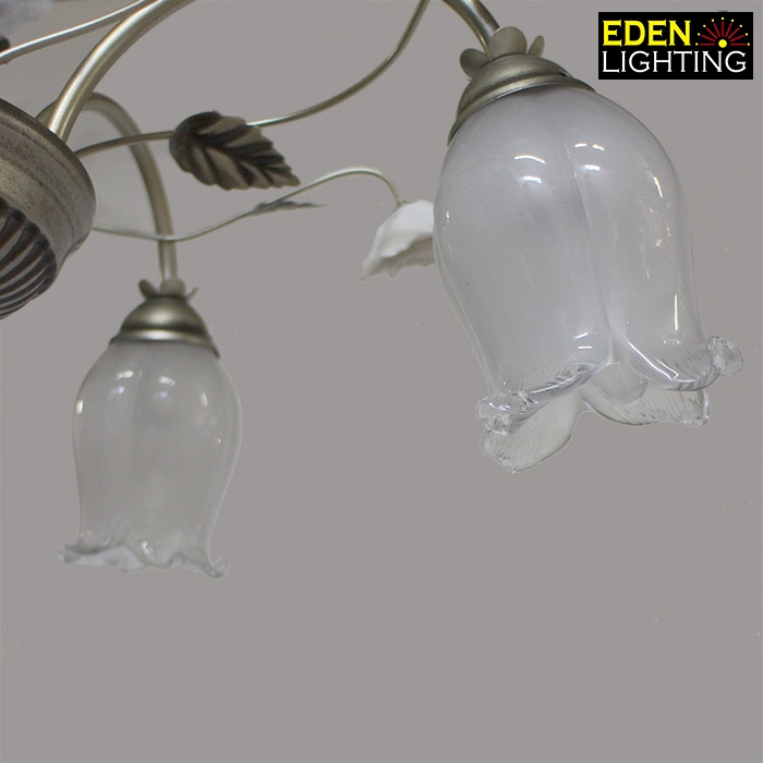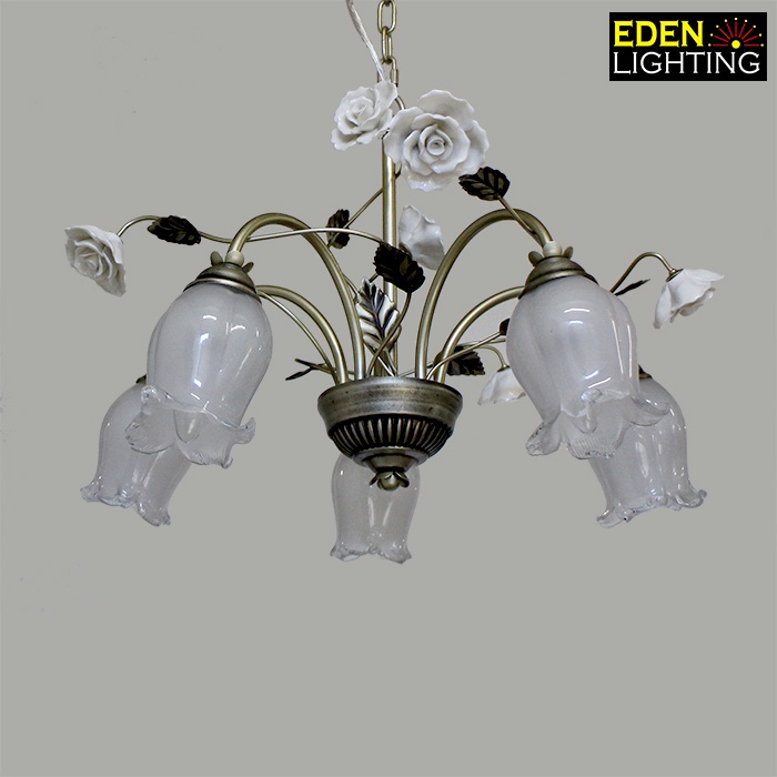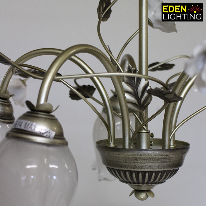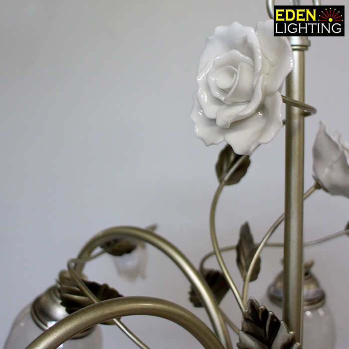 Finish: Painted metal frame, frosted glass, white ceramic flowers