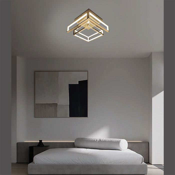 This ceiling light has square and rectangle shapes put together with gold and white acrylic that looks like a modern style. This light not only brightens the room but also makes it look artistic. It is ideal for the living room, bedroom, or lounge.