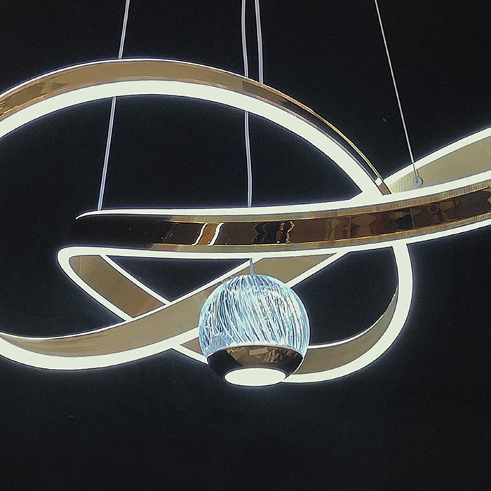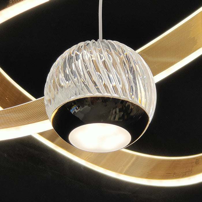 LED Pendant light Color change 5171, this energy-saving pendant light has gold rings and one crystal ball in the middle that glow beautifully. ideal for contemporary homes or residential decor.
