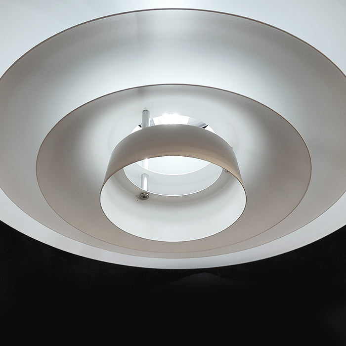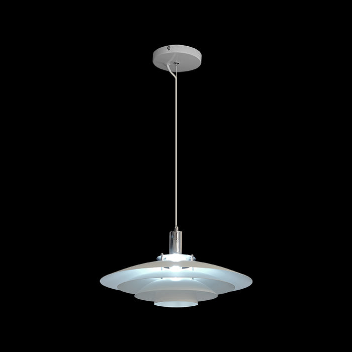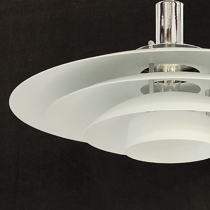 This pendant light features a gloss white shade in a vintage style. It is great for modern interiors and can enhance spaces like kitchen island or dining areas.