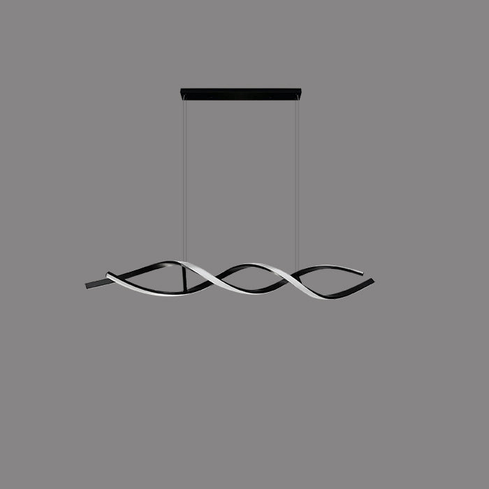 This pendant light has a wave shape with clean, modern lines. It's simple in color and design, making it great for modern rooms. This light is perfect for places like living rooms or kitchen island.