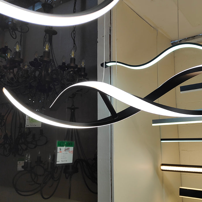 Unit price perLED Pendant light Black 80786-900mm, this is an LED high-efficiency energy-saving light fixture that features a wave shape with clean, modern lines, making it ideal for enhancing contemporary interiors.