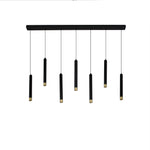 This chandelier features seven slender black pendants, offering a sleek and modern look. Each pendant is equipped with an LED bulb at the bottom, emitting a warm light. The height of the chandelier can be freely adjusted to suit various indoor space needs. Its unique design makes it an ideal choice for dining rooms or living rooms.