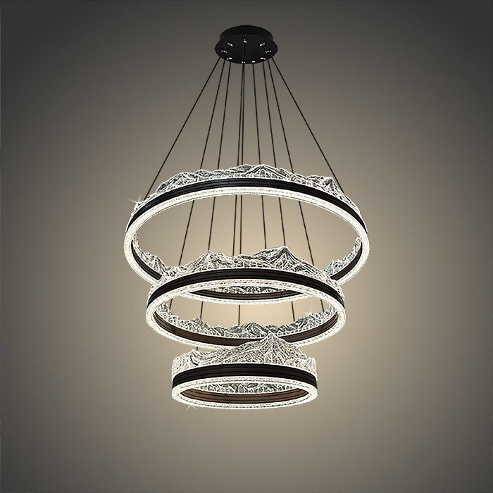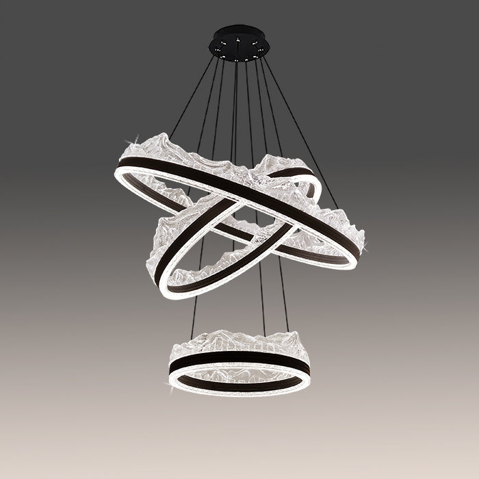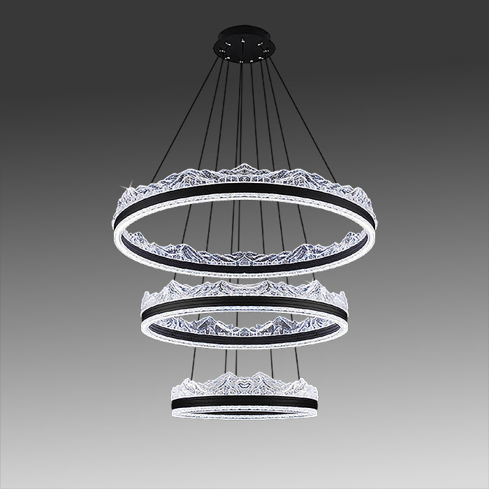 LED Pendant light Color change 76060, this energy-efficient, elegant triple-ring chandelier features adjustable angle and glowing acrylic, ideal for enhancing modern interiors.