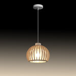 Natural Wooden Pendant Light shade Wood05-230mm, this lighting fixture, featuring natural materials, has a modern design with a round wooden shade, making it ideal for New Zealand home decor.