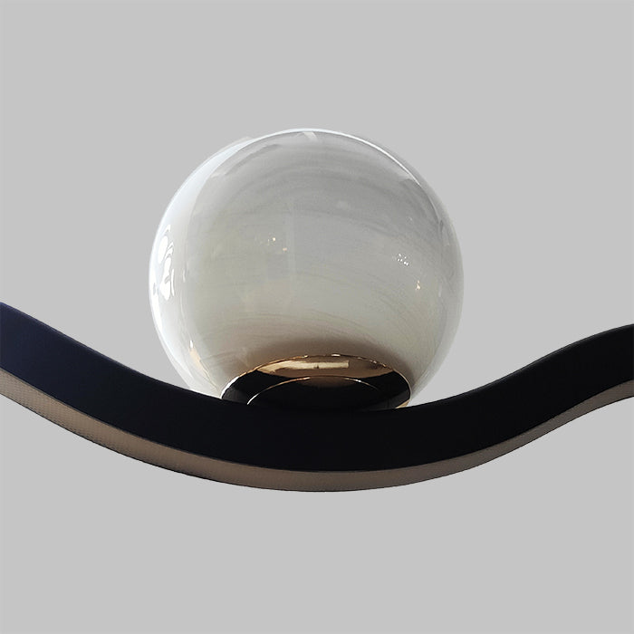 This is a modern pendant light featuring a wavy linear bar with three round white glass shades.The design is elegant and artistic, creating a soft and stylish lighting effect. Perfect for kitchen islands, dining areas, or modern living spaces.