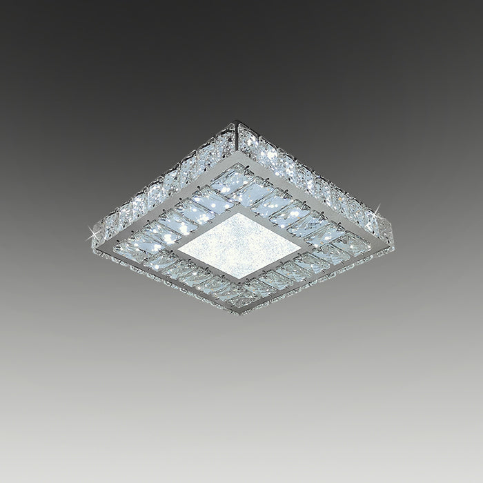 A trendy and modern ceiling fixed chandelier designed in sqaure base. the crystals are utilizing in square. This chandelier is featured with build in LED. This ceiling fixed chandelier is perfect for 2.4m ceiling heights, ideal for your living room, dinning room, and entrance way.