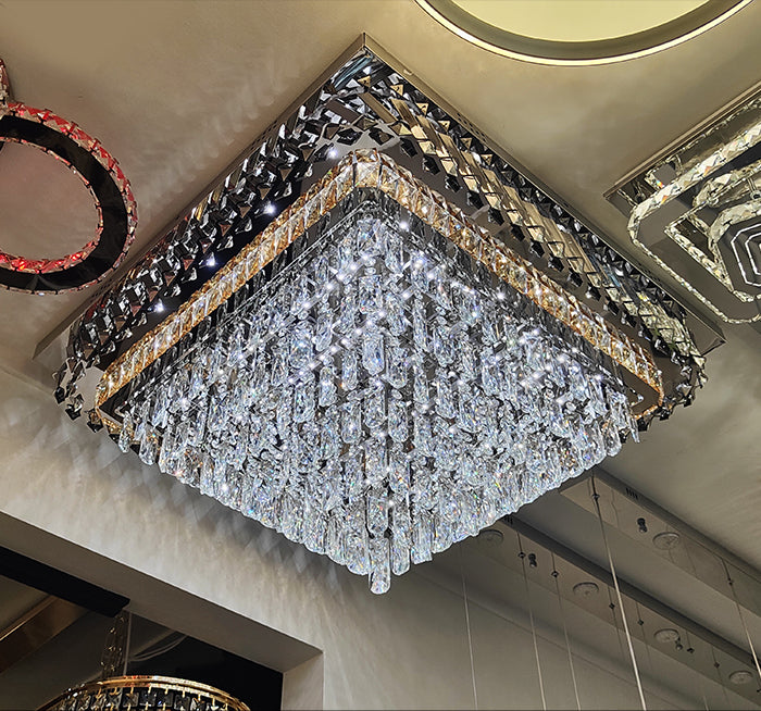 LED Ceiling light Color change Modern 3920-800mm, this is a modern, energy-efficient crystal LED ceiling chandelier designed for indoor spaces, featuring square shape that elegantly diffuse light.
