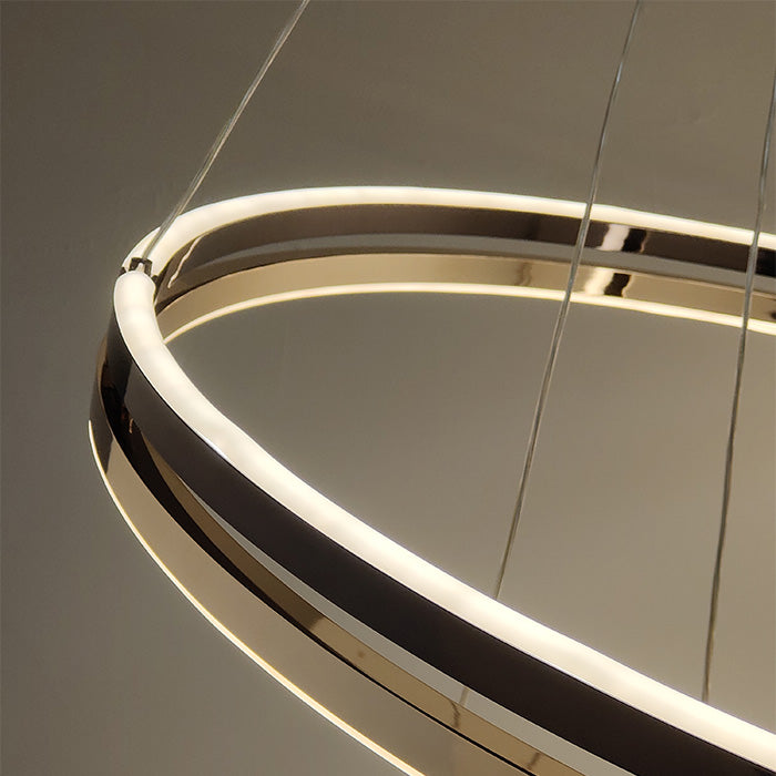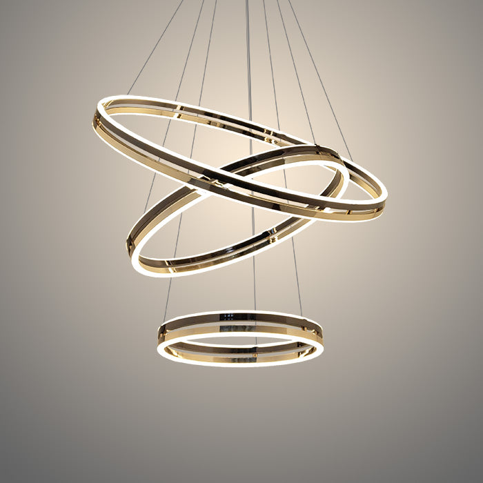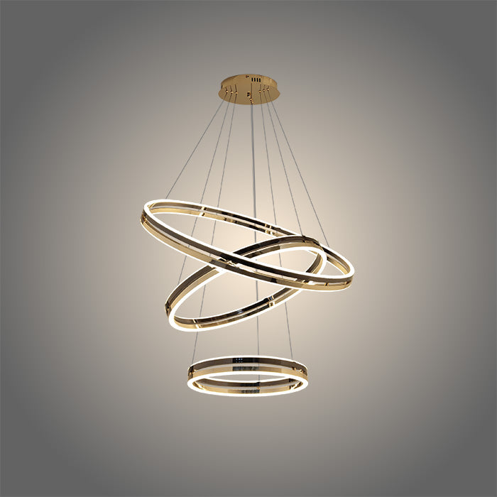 Pendant light LED Color change 83090, this energy-efficient, elegant triple-ring chandelier features adjustable angle and glowing acrylic, ideal for enhancing modern interiors.