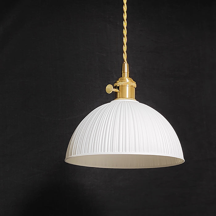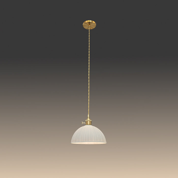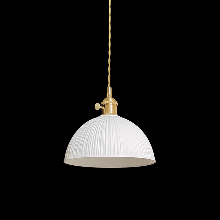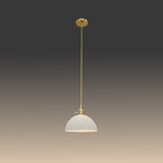 This modern pendant light features a gold suspension and elegant white shades. Its design beautifully combines classic charm with contemporary style, making it a perfect choice for modern homes.