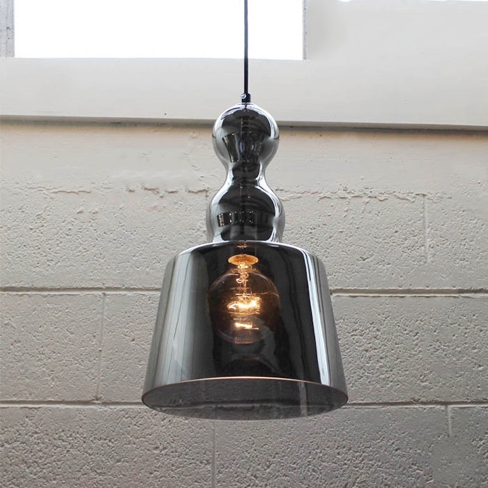 This pendant has a distinctive contemporary look, featuring a smoke bottle shade. It can be paired with a trendy filament bulb to create a funky light source with this unique pendant. Available in two sizes, 120mm and 250mm, both clear glass and smoked glass options are available.
