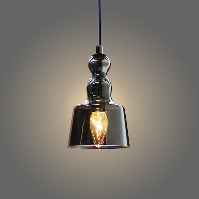 This pendant has a distinctive contemporary look, featuring a smoke bottle shade. It can be paired with a trendy filament bulb to create a funky light source with this unique pendant. Available in two sizes, 120mm and 250mm, both clear glass and smoked glass options are available.
