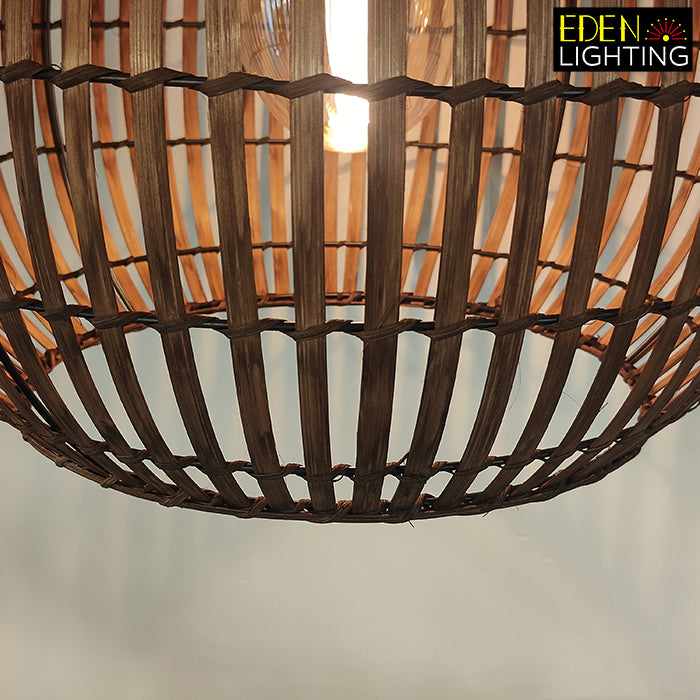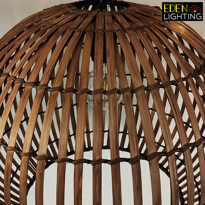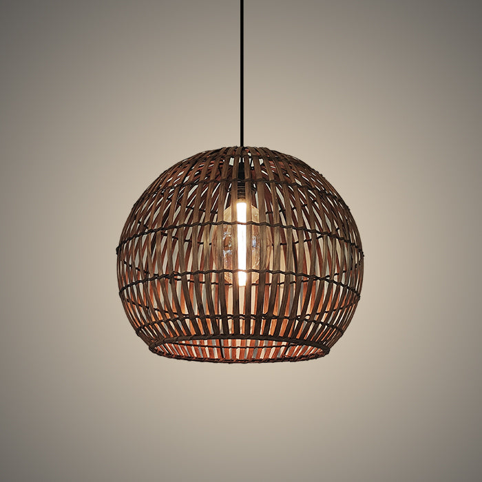 Unit price perPendant light shade Brown Bamboo 9096-400mm, this wooden light features a spherical, cage-like design made of slender wooden strips, ideal to enhance a rustic decor style.