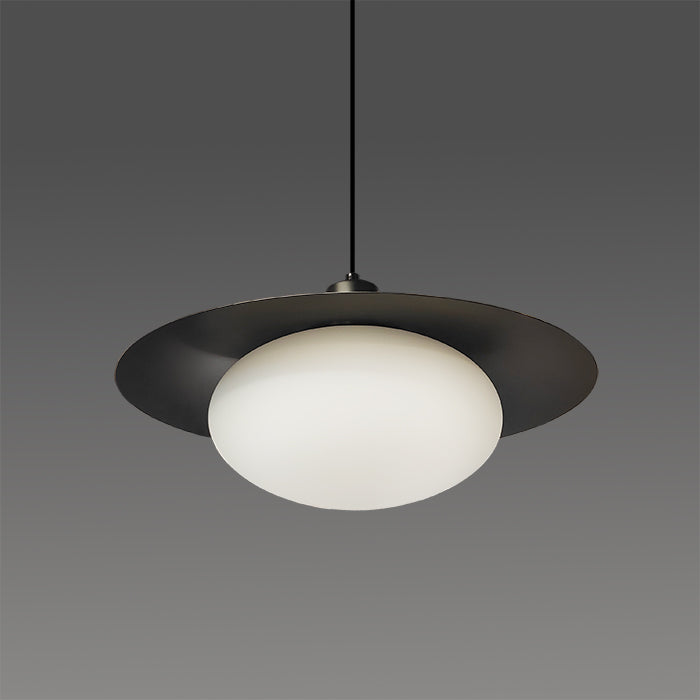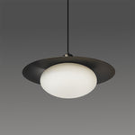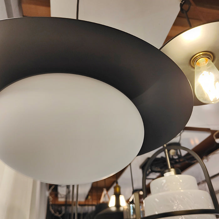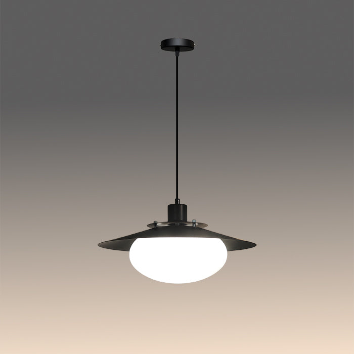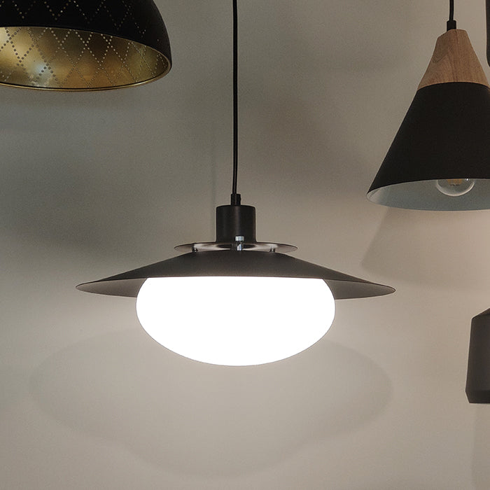 Pendant light Glass and Metal 167, this pendant light features a black metal shade with opal glass that looks both modern and rustic. The design is ideal for residential homes or commercial use.