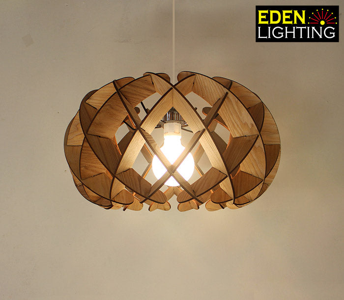 This is one of our most popular wooden collection, it is made of plywood and design in diamond shape, the cross cut design has added another detail around this gorgeous shade. It can be used as a lamp shade.