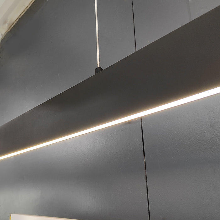 The light fixture consists of a long, black bar suspended by two slender supports, providing clean and even illumination. Its minimalist lines and solid-color design allow it to seamlessly integrate into any interior.