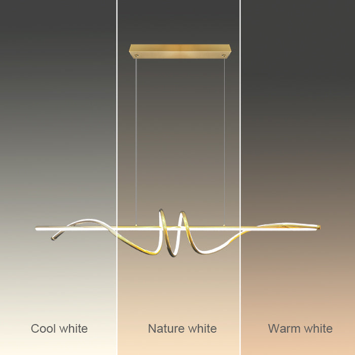 This pendant light features a unique wave design, combining straight and curved elements to create a modern artistic look. The golden frame makes it stylish and perfect for dining tables or a kitchen island.