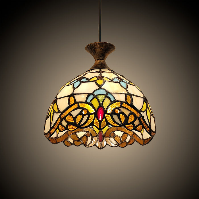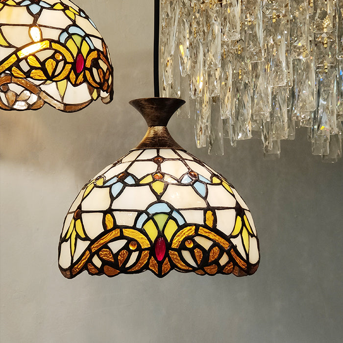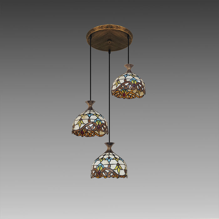 Unit price perPendant light Tiffany 9045/3, this vintage-style light features a classic Tiffany design with colorful glass pieces in floral and shape patterns, making it perfect for modern interiors and residential homes.